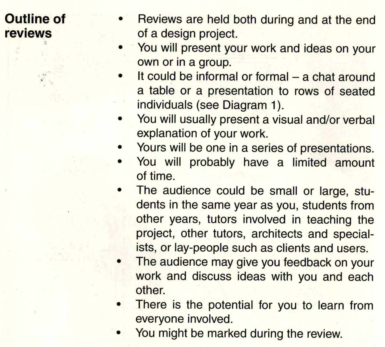 Reading 9: From The Crit: An Architecture Student's Handbook, pp. 4, 6, & 7.