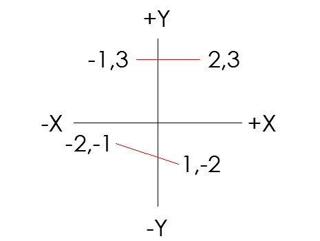 Two red lines and the coordinate points that identify their endpoints are shown below.
