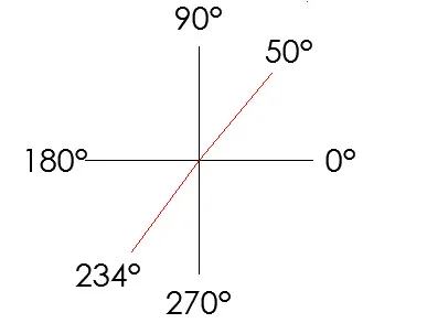 Angled lines are drawn using the following degrees. By default operations work in a counter-clockwise direction.