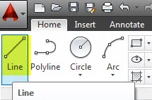 Ribbon: On the ribbon you will find icons for many of the operations. The image below shows a small portion of the Home ribbon. The Line tool has been selected. Click on the tabs next to Home to open the different ribbons.