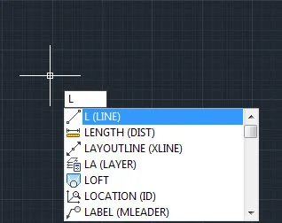 It is possible to initiate many operations in more than one way. You could select the Line tool from the ribbon. The command line is another way. You simply begin typing a command. In the image below the letter "L" was entered. A list of commands that start with L appear. If you want to make a line, you can continue typing in the word or select it from the list.