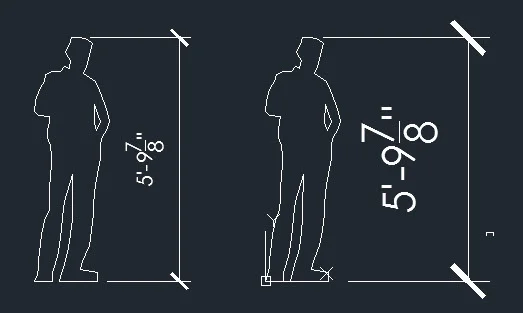In the image below are two of the same scale figures drawn ini model space. On the left a dimension has been placed. The dimension has been set to a scale for printing at 1/4"=1'-0". At the right another dimension has been placed; the dimension has been set to a scale for printing at 1/8"=1'-0".