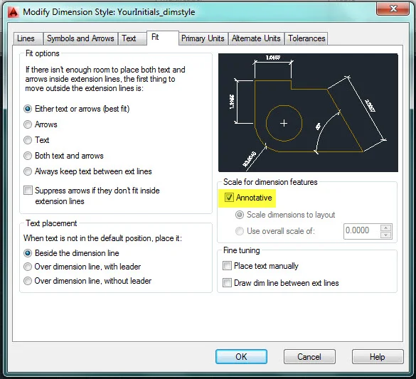 ANNO.3. Name the new style with your initials followed by dimstyle. Jake Taylor would name his dimension style JakeTaylor_dimstyle.