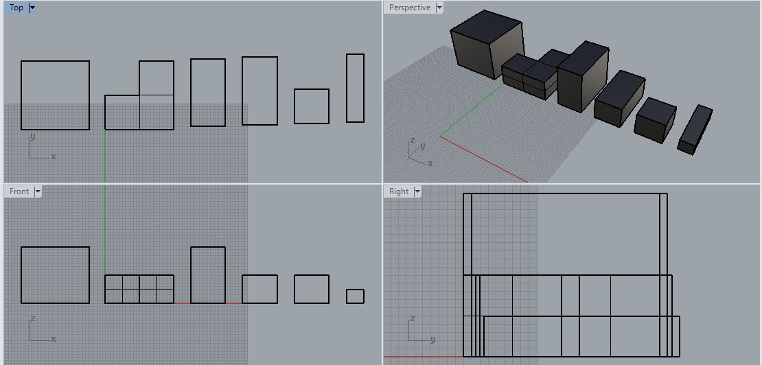 BV.9. The image below shows all 6 volumes. To view all of the volumes in a view window, type Zoom and select Extents.