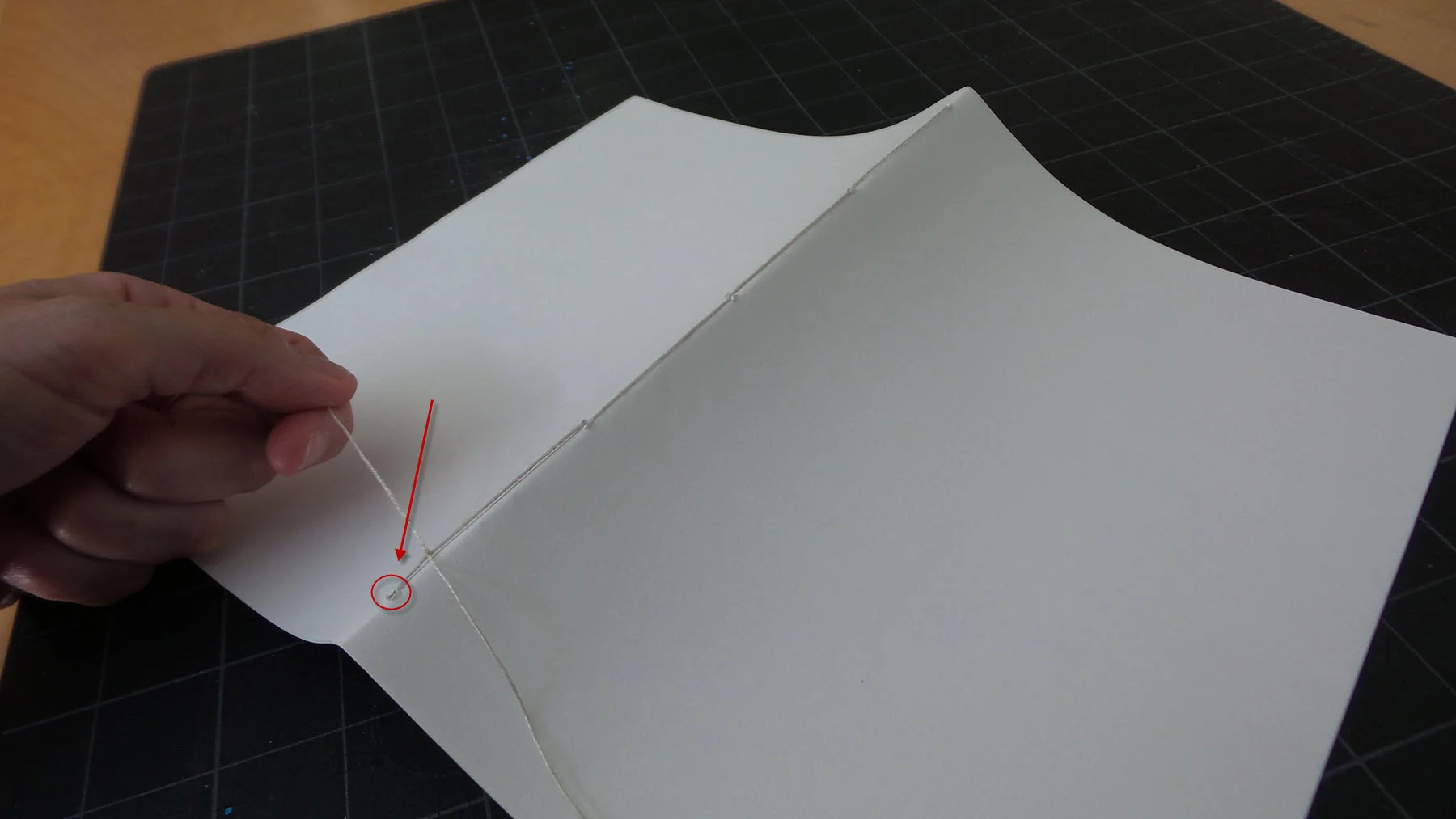 3.1. Cut a piece of binding thread that is (the length of your text block from top to bottom) x