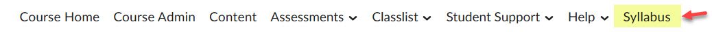 GD.12. Next you will be downloading the syllabus and uploading it to your new folder. Why? You may need these in the future if you transfer or wish to take another course. Find the syllabus on the Brightspace course site. On the Brightspace menu click on Syllabus.